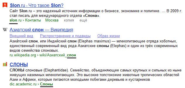 На скрине мы чётко видим что часть ссылки отображается жирным шрифтом, что говорит о том, что Яндекс нашёл наиболее релевантную страницу подходящую запросу (Слон). И конечно он поднимает данную страницу выше в выдаче. Данный пример лишь для того чтоб вы поняли важность URL-а страницы. Не так давно на гуглил хороший сайт где можно скачать шаблоны dle, делюсь ссылкой с посетителями.